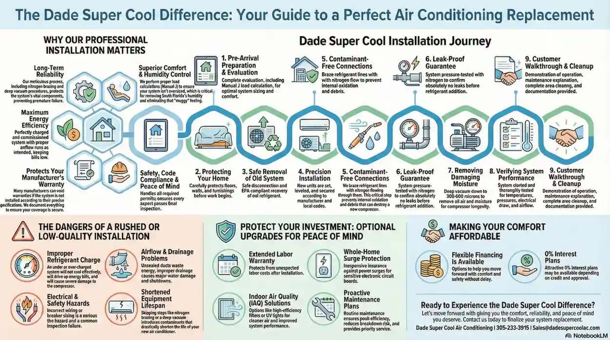 Replacing your air conditioner is a significant decision that impacts your home's comfort, energy efficiency, and value for years to come. By choosing Dade Super Cool Air Conditioning, you gain a partner dedicated to providing expert guidance and professional service to restore reliable comfort to your Kendall home. We also offer convenient Financing options to help make your new AC investment more manageable and provide a Maintenance Plan to keep your new system running efficiently long after installation. We proudly serve the Locations area, including Kendall, FL.